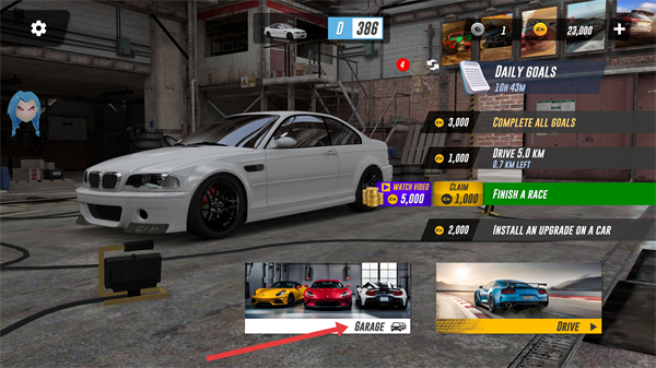 1、点击【GARAGE】按钮,进入车库界面,可查看和管理车辆。