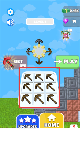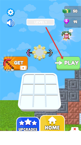 2、合成并装备好镐子后,点击【PLAY】按钮,进入钻石挖掘的游戏关卡。