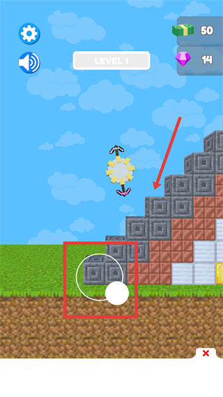 3、操控红色框内的白色圆圈,瞄准灰色方块区域,发射挖矿工具进行挖掘。
