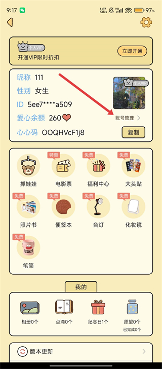 2、在个人页面找到【账号管理】,点击进入,就能找到账号相关的设置选项啦。