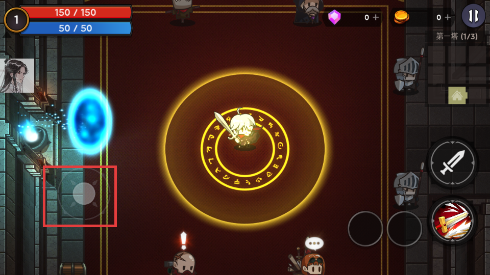 1、使用移动控件控制角色移动,在场景中探索,开启冒险旅程。
