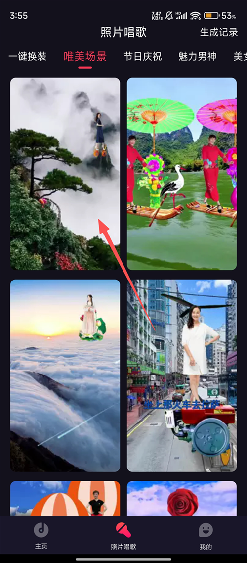 2、在【照片唱歌】的【唯美场景】中,挑选心仪模板,为来电秀增添别样风采呀。