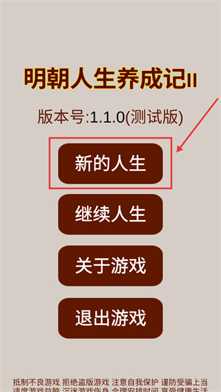1、进入【明朝人生养成记II】,点击【新的人生】按钮开始游戏,开启全新角色养成之旅,体验明朝背景下的人生模拟。