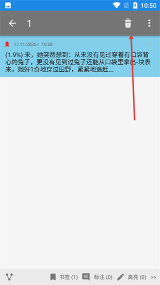 4、选择要删除的书签后,点击删除图标,完成书签删除操作。