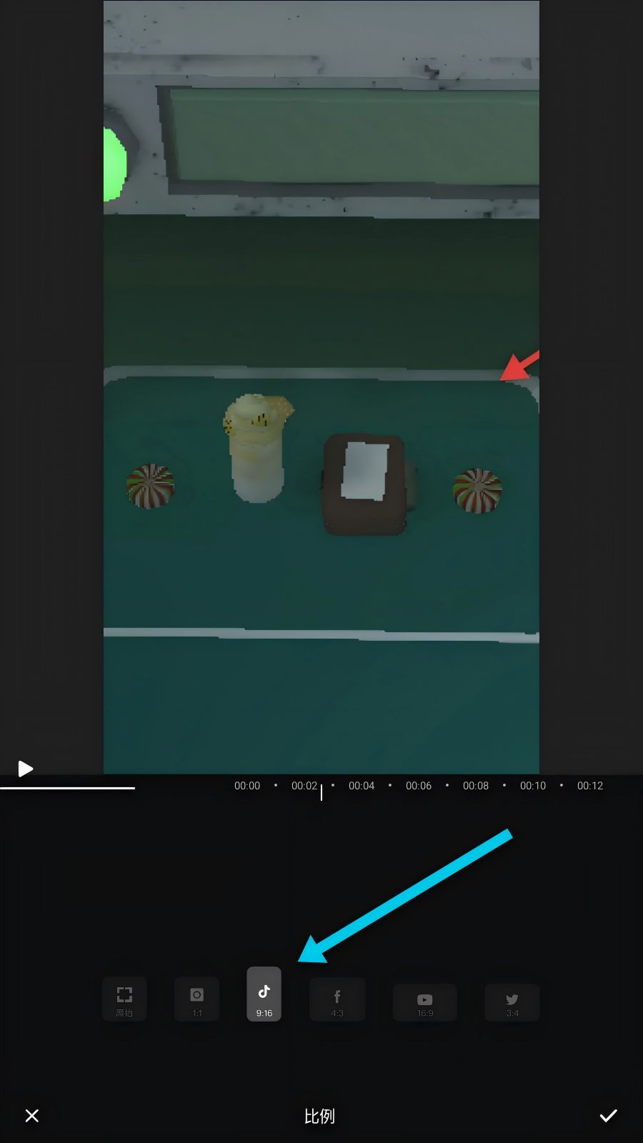 2、进入剪辑界面后,我们可选择【抖音】比例,让视频适配平台,展现更合适的画面呢。