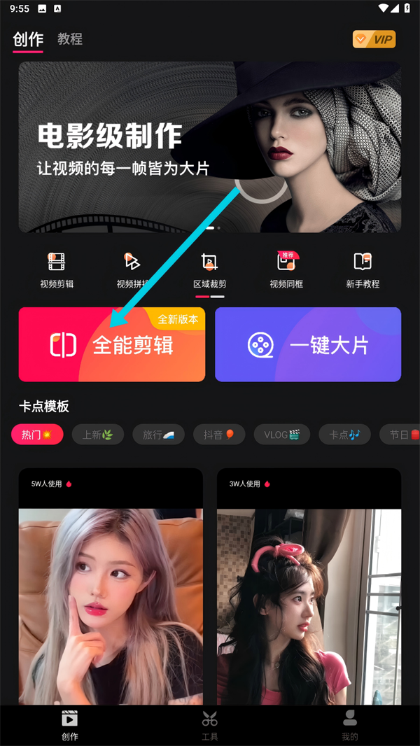 1、打开【爱剪辑】App后,我们可以点击【全能剪辑】,开启视频创作之旅,尽情发挥创意哦。