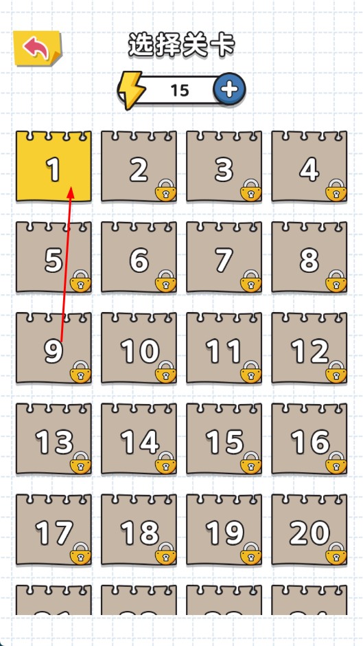 1、在关卡选择界面,点击【1】,进入第一关游戏。