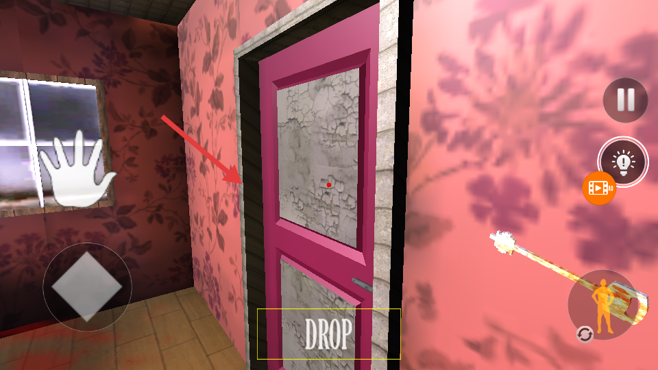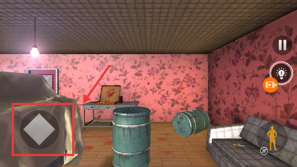 2、进入房间场景后,利用屏幕左下角【虚拟方向键】移动角色,开始探索房间,寻找关键道具。
