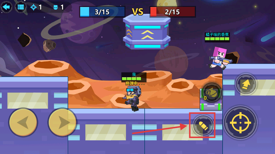 2、对战比分3/15且角色换弹时,点击右下角弹药道具补充,保持对敌方持续压制输出。