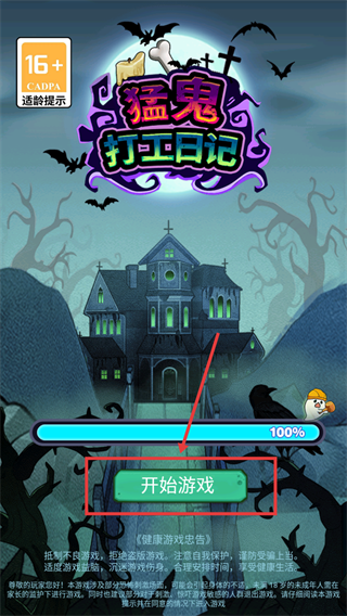 1、点击【开始游戏】按钮进入游戏,开启猛鬼打工日记的鬼屋经营之旅,体验轻微恐怖的模拟经营乐趣。