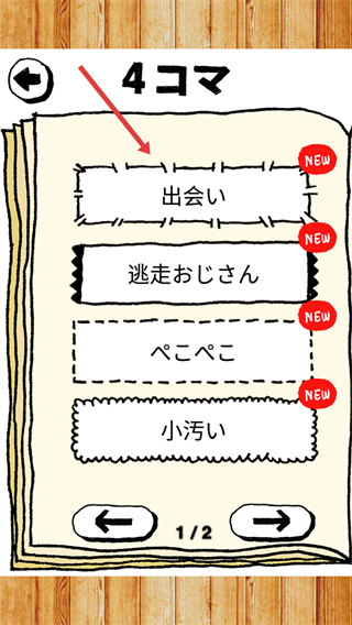 2、在该界面中,点击红色箭头指向的“4コマ”(四格漫画)选项,进入漫画界面。