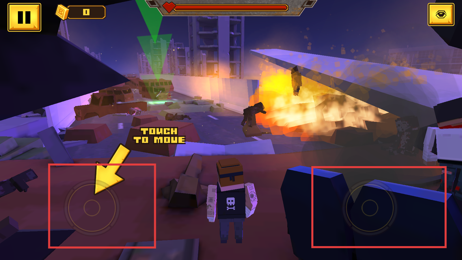 3、利用左侧移动按钮和右侧操作按钮,在场景中移动并互动,应对爆炸等情况。