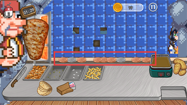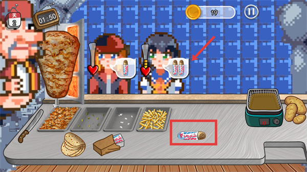 1、观察顾客(红色框内)的食物需求,及时提供对应食物。