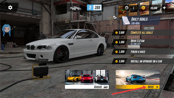 1、点击【DRIVE】按钮,进入驾驶场景,开始赛车任务。