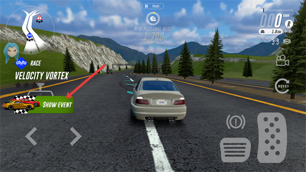 2、在赛道中点击【SHOW-EVENT】按钮,参与赛事活动,提升驾驶体验。