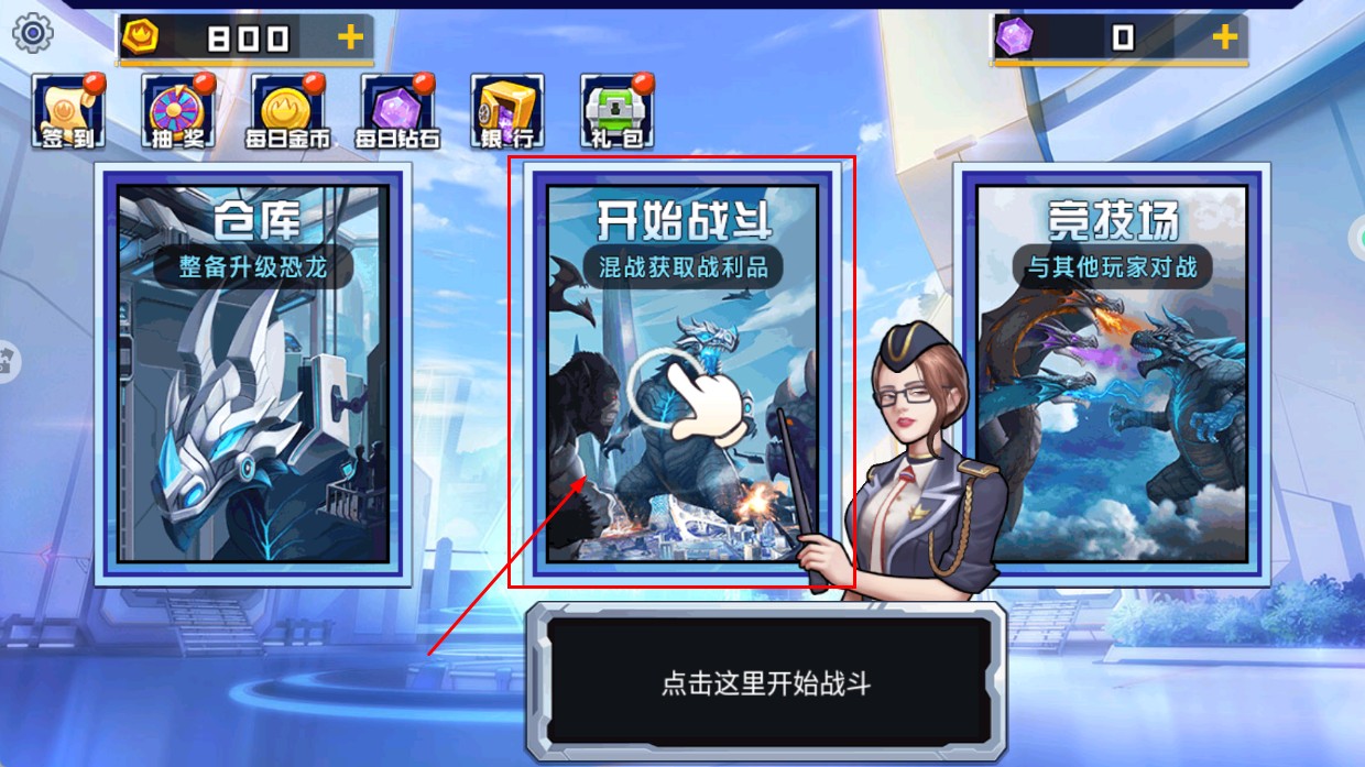 1、点击【开始战斗】进入混战场景,获取战利品提升怪兽战力,为后续竞技积累优势。