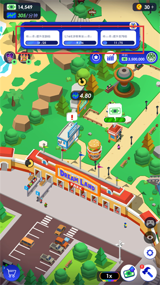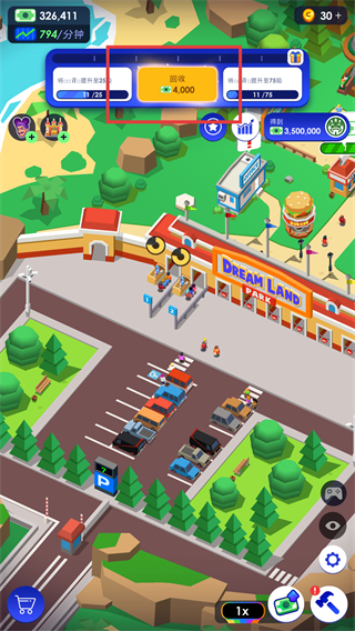 3、完成各类任务(如回收任务,可获得4000金币奖励),积累资金用于游乐园的升级。