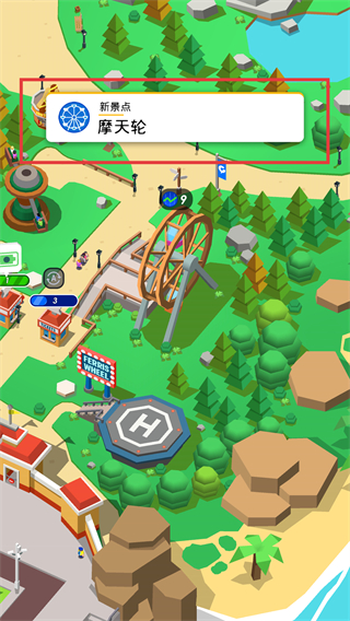 3、闲置挂机收益持续生效,离线状态下仍能自动积累门票与消费收入,兼顾碎片时间游玩与长期扩张规划。