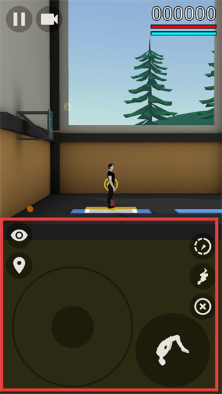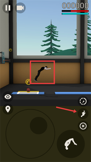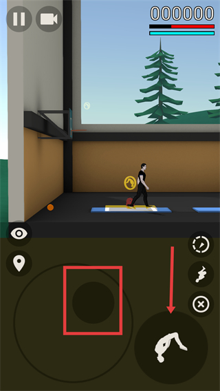 2、在游戏场景中,利用红色框内的操作区域,控制角色移动和进行后空翻动作。