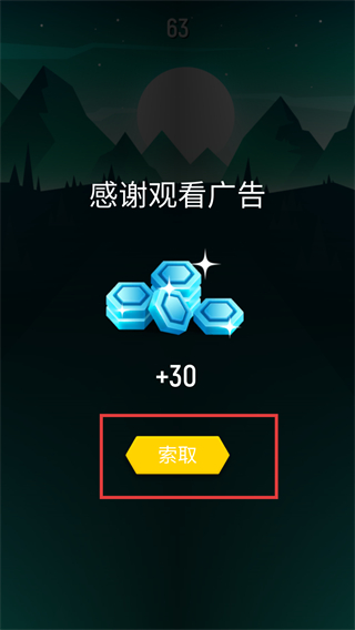 4、点击【索取】按钮,领取【蓝色宝石】奖励用于解锁道具,助力游戏持续挑战。