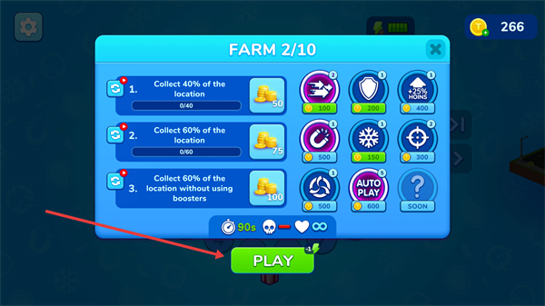 1、点击【PLAY】进入关卡,根据关卡目标,规划龙卷风的吞噬路径。
