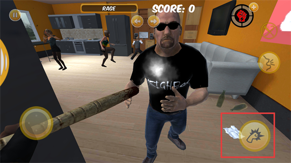 1、在场景中利用技能按钮破坏物品,提升“RAGE”值和分数,丰富发泄方式,增强游戏体验。