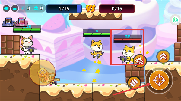 2、瞄准敌方角色后点击攻击按钮,击败目标可积累击杀数,同时拾取其掉落的【补给】道具。