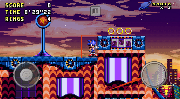 3、熟悉左侧移动摇杆的操作,操控索尼克在关卡中移动,躲避障碍,收集沿途的金币。