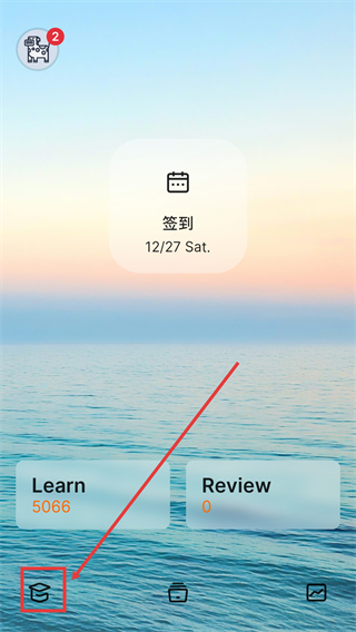 1、打开手机中的不背单词,在软件的主页面中,需要点击下方中的方块图标。
