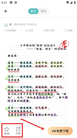 4、在笔记详情页,可收藏、分享笔记,还能下载学习资料,学习更高效啦。