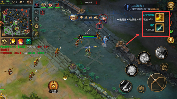 1、操控英雄进入战场,利用左下方遥感进行移动。