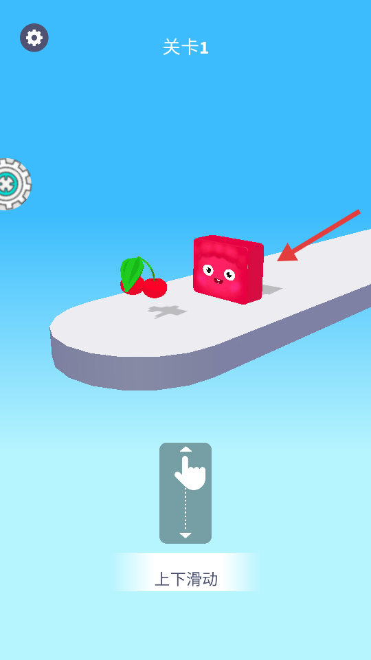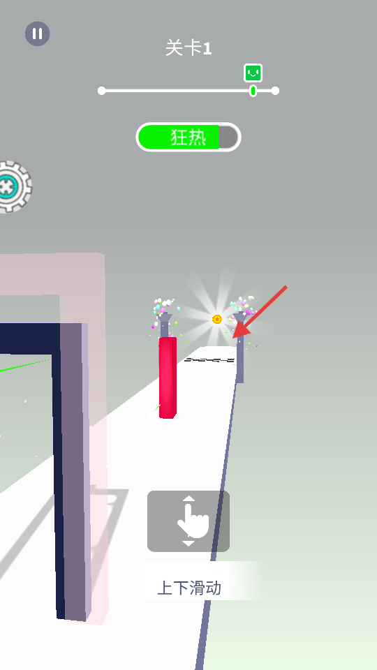 1、关卡开始,上下滑动屏幕控制红色方块移动。
