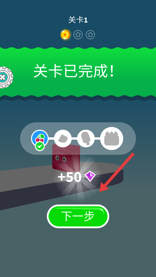 4、关卡完成后,获得+50钻石等奖励,点击【下一步】按钮,继续挑战后续关卡。