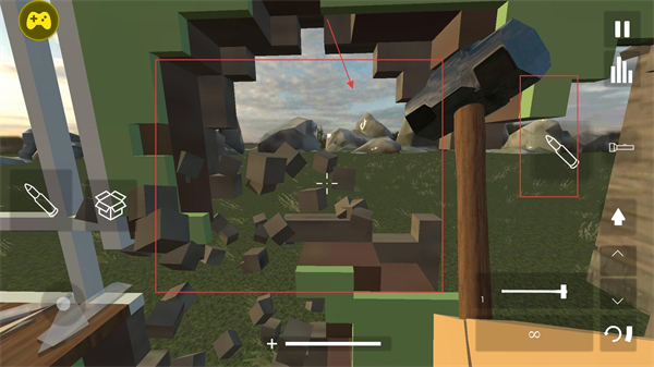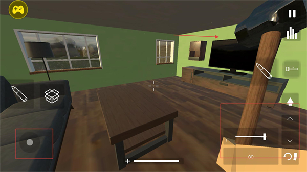 3、玩家在进入场景后,利用右侧操作杆控制破坏工具,瞄准室内家具、墙体等目标,通过点击完成破坏操作以推进进程。