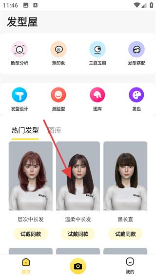 1、进入【发型屋】界面,在热门发型中选目标发型(如【温柔中长发】),点击【试戴同款】。