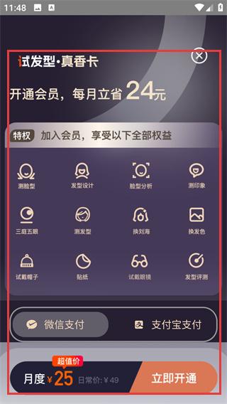 4、试戴后若需解锁更多发型,可开通【试发型·真香卡】会员,获取全部发型权益。
