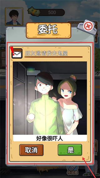 3、委托界面出现【朋友邀请去鬼屋】任务,点击【是】接受委托,完成后可获取资金推进剧情。