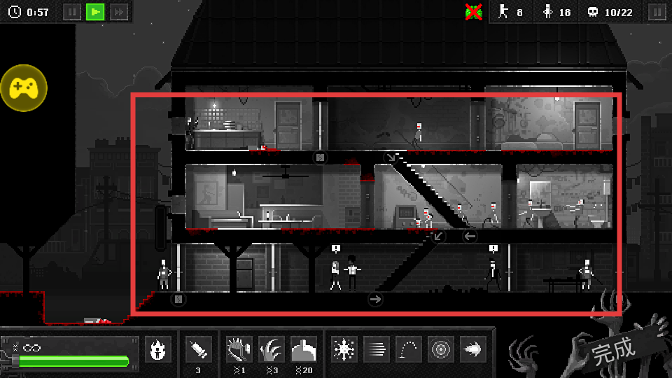 3、观察红色方框内的人类分布,利用无限道具规划感染路径,大量击杀人类,提升杀人数量。