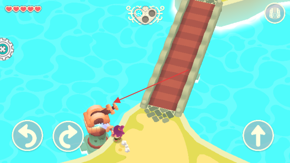 2、用方向按钮控制角色移动到【紫色怪物】位置,使用【大剑】攻击敌人,击败后提升装备攻击范围与威力。