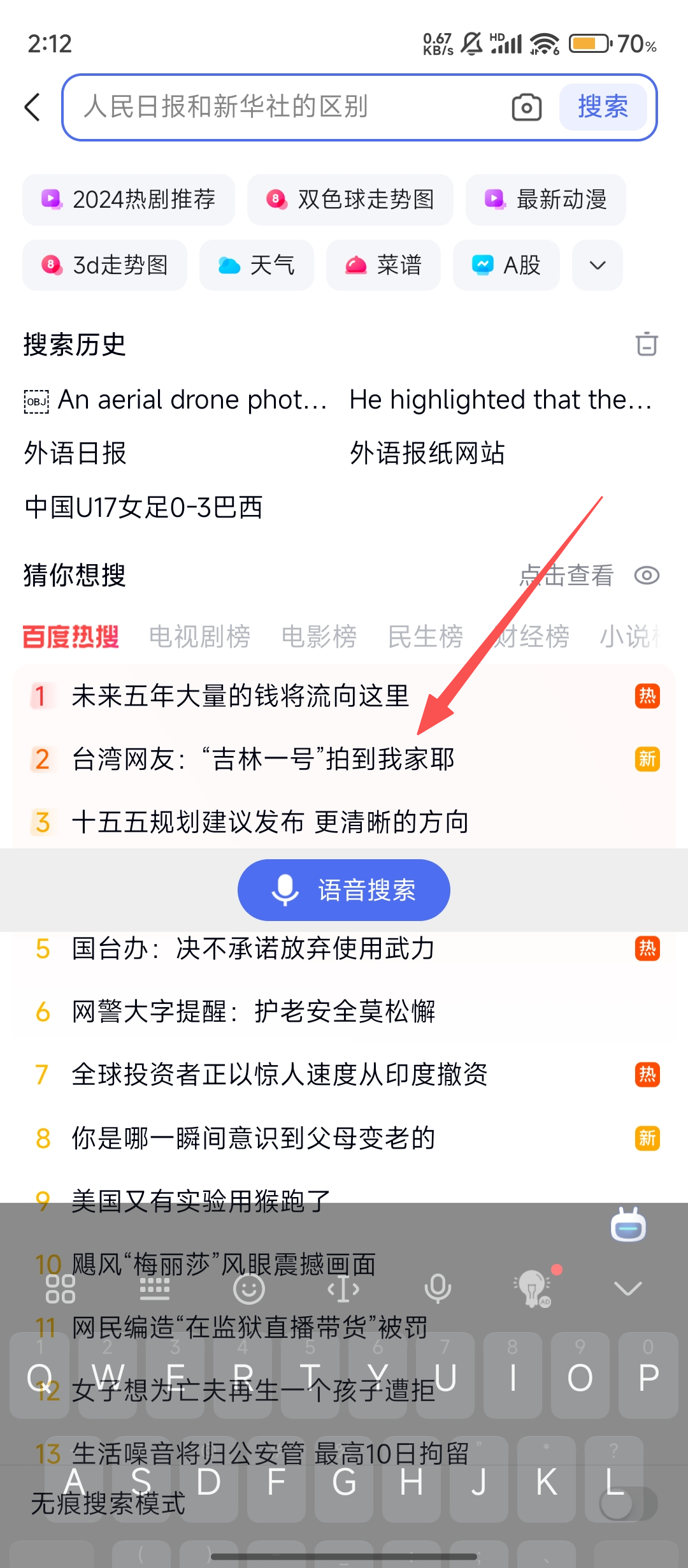 1、在百度浏览器搜索页,点击【百度热搜】里感兴趣的词条进入网页,为收藏操作做好准备。