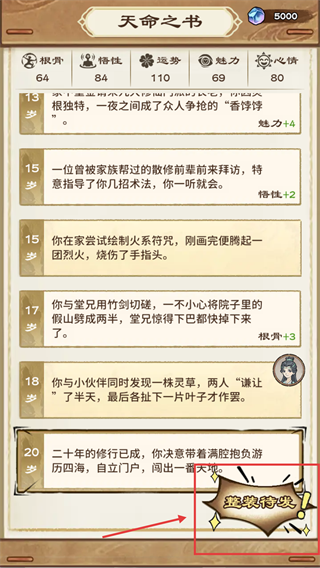 4、20岁整装待发前,需准备丹药提高突破成功率,避免失败损失修为,以便自立宗门游历。