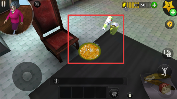 3、找到红框内的【早餐】区域,使用道具对其进行整蛊操作,完成毁掉早餐的任务环节。