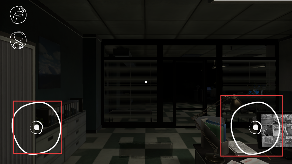3、游戏中利用左虚拟摇杆控制走向,右侧可以切换不同视角,探索办公室场景,寻找线索和可互动元素。
