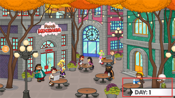 1、游戏以天数为经营周期(如DAY:1),每天需接待不同的顾客,完成咖啡制作任务,积累经营经验和资金。
