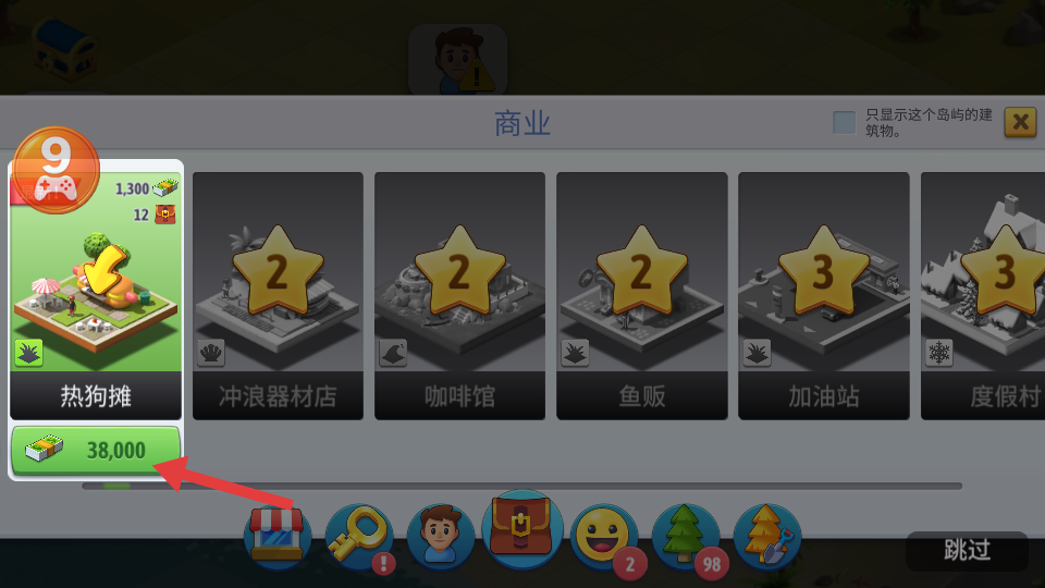 4、选择商业类的热狗摊,花费【38,000】建造,发展城市商业。