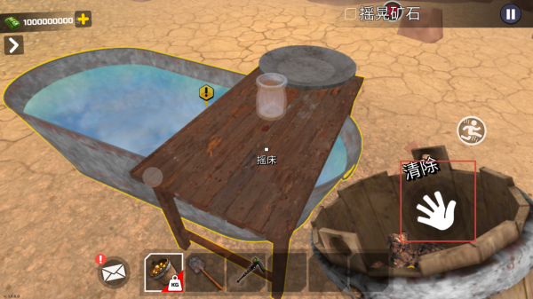 2、点击【清除】,处理摇床区域,推进矿石加工的后续流程。