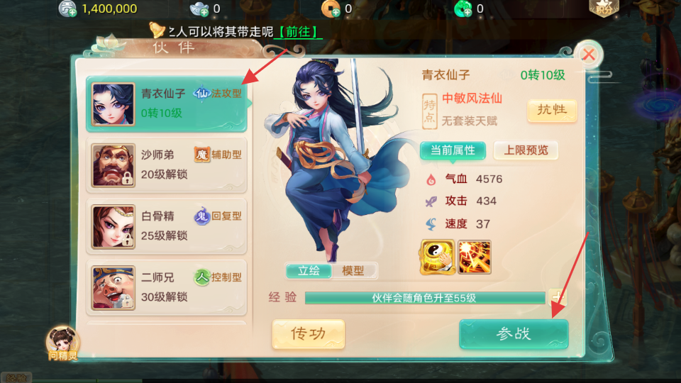 3、选择目标伙伴,点击【参战】。
