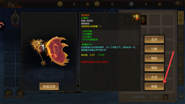 3、选择【穿载】按钮,为英雄穿戴装备。