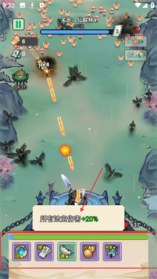 2、战斗时触发【所有法宝伤害+20%】的属性加成,提升法宝输出效率,快速清理【仙踪林4】中的妖兽。