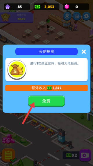 1、点击【免费】获取天使投资的额外收入5875,提升商场运营的资金储备。